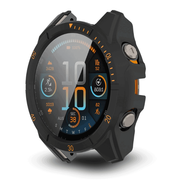במקום 5 כפתורים כמו ב-Fenix – השעון כולל שני כפתורים בלבד, ממשק Touch מלא ותצוגה ברורה במיוחד – אידאלי לשימוש יומיומי לצד אימונים אינטנסיביים.
