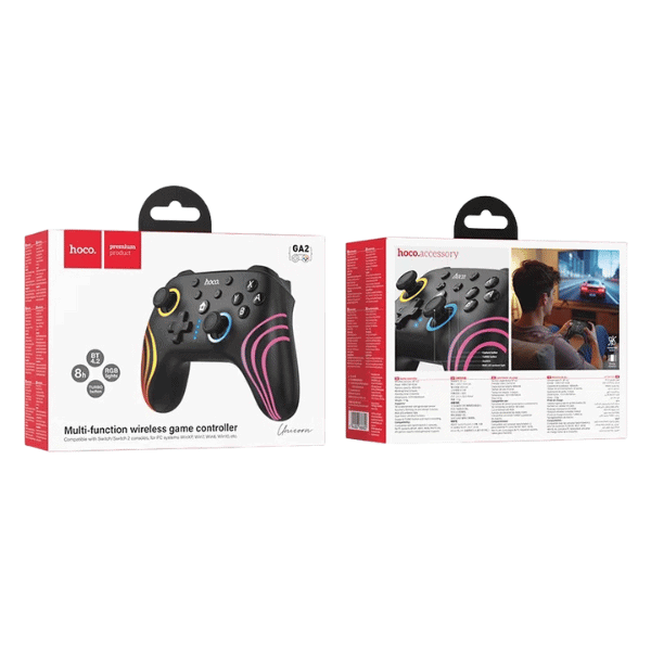 ה־HOCO GA2 הוא בקר משחק אלחוטי עם עיצוב חדשני ואורות RGB Breathing Light מתחלפים, שמוסיפים אווירה מהנה ומיוחדת לשולחן הגיימינג שלך. הבקר תומך בקונסולות Nintendo Switch 1/2, מחשבים נייחים, ניידים ומכשירים נוספים עם חיבור Bluetooth – ומספק חוויית משחק חלקה ונוחה.