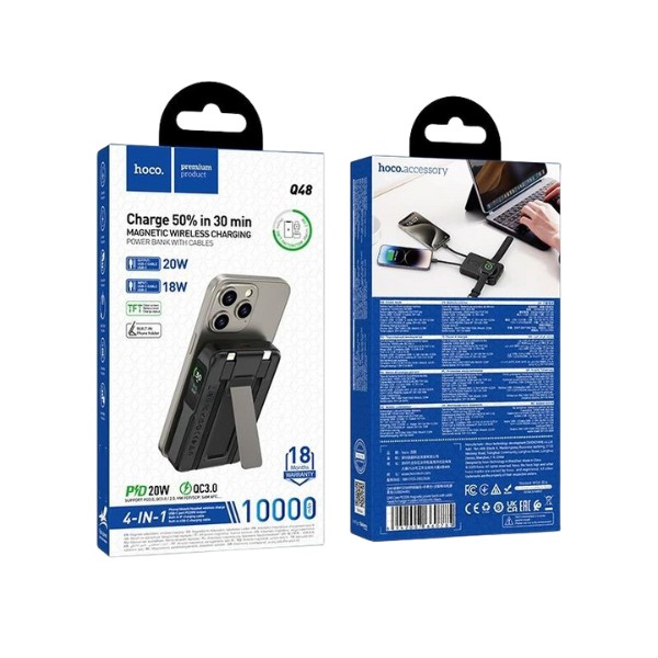 מטען ה־Hoco Q48 הוא הפתרון המושלם למי שצריך טעינה מהירה, נוחה ורב-שימושית בכל מקום. עם סוללת 10000mAh, כבלים מובנים, טעינה אלחוטית מגנטית ותמיכה מלאה ב־MagSafe – זהו אחד המטענים הניידים השלמים ביותר בשוק.