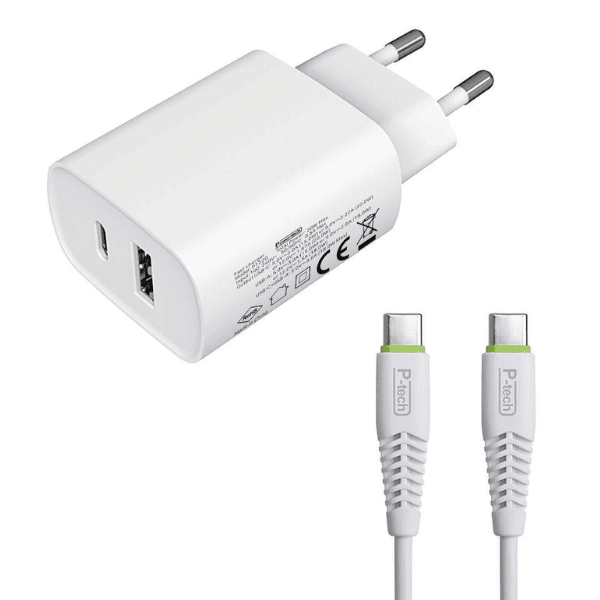 מטען קיר מקורי Power-Tech 25W עם יציאות USB-C ו-USB-A