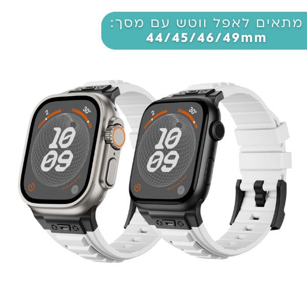 רצועה לאפל ווטש 44/45/46/49mm סגנון Tactical לבן אבזם צבע Black