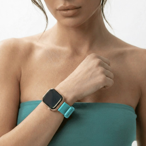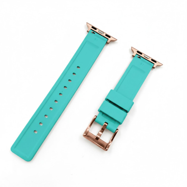 רצועת גומי 40/41/42mm מסוג Hypoallergenic FKM Classic אבזם זהב ורדים Cyan