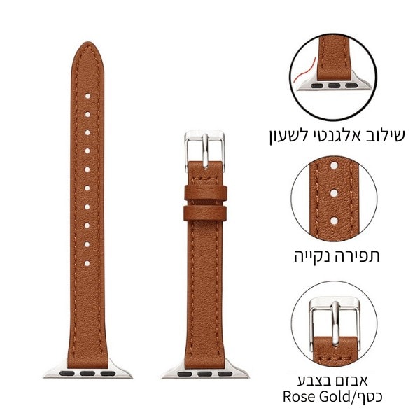 הלבישו את השעון שלכם בסטייל ובאלגנטיות! עם רצועת עור צרה לשעון אפל ווטש, תוכלו ליהנות מההתאמה והנוחות המושלמת על היד שלך.