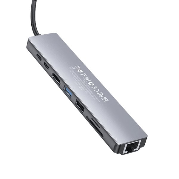 • חיבור 8 ב-1: כולל יציאת HDMI, חריץ לכרטיסי TF ו-SD, וכניסת USB 3.0. מאפשר חיבור מגוון רחב של אביזרים דרך כבל Type-C.