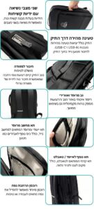 התיק כולל יציאות טעינה מהירות מובנות (USB-A ו־USB-C).